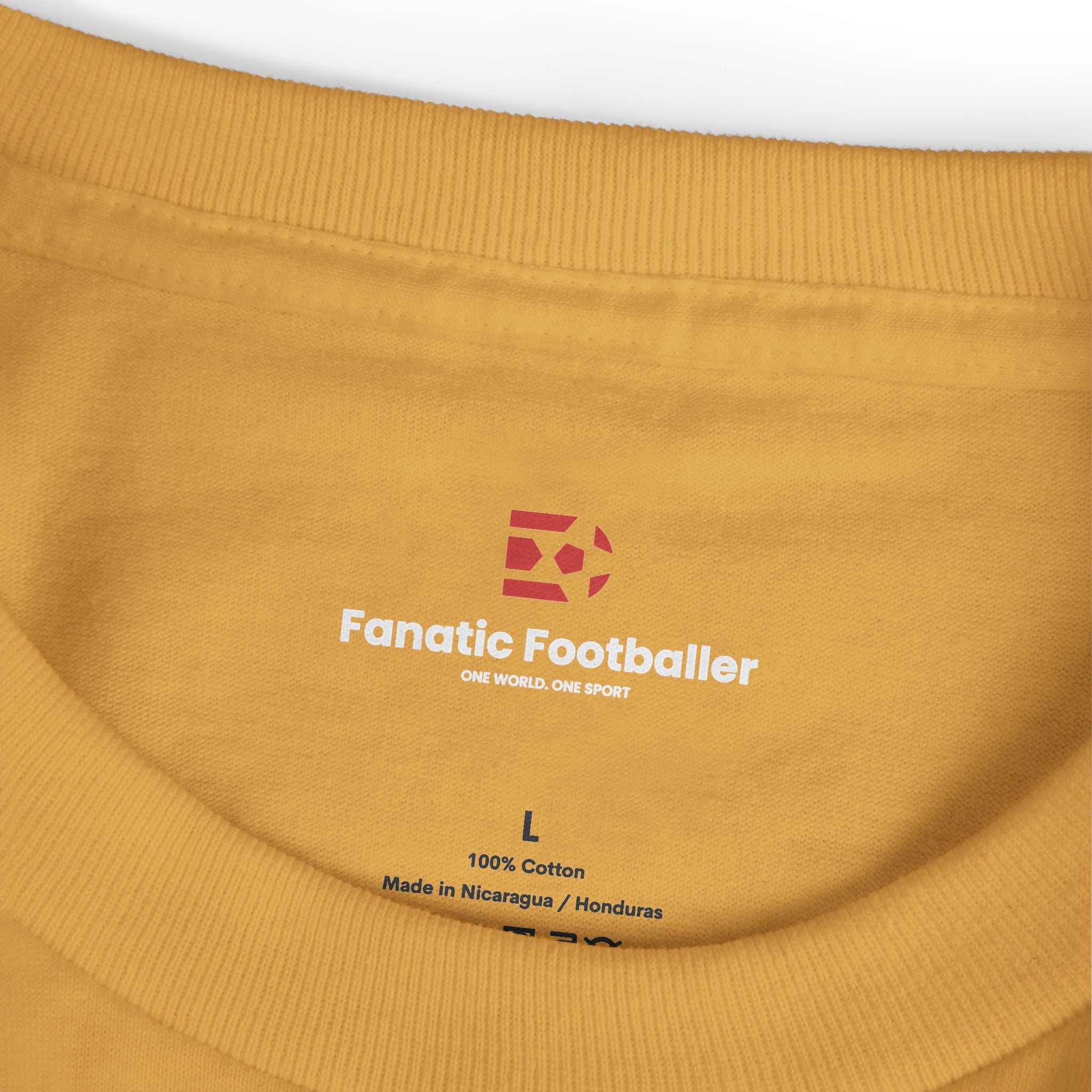 This heavyweight cotton tee feels like a trusted companion from the first wear. The garment-dyed finish gives warm, lived-in color and a soft broken-in texture that ages beautifully. Bold yet understated, the small chest and upper-back prints let the design speak quietly — for people who love football culture but prefer low-key, thoughtful style. The relaxed cut and sturdy 6 oz fabric drape comfortably for match days, travel, or lazy weekends. Ethically made and OEKO-TEX certified, it’s a shirt that looks good and aligns with mindful production values.